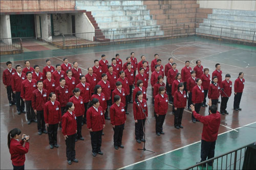 这次军训活动,创新了军训形式,丰富了军训内容,变传统单一的队列训练为背诵应知应会知识,集体合唱《吃亏歌》三项内容。通过背诵应知应会知识,进一步约束和规范大家的思想和行为,激发大家的工作热情。通过学唱吃亏歌,进一步增强大家廉洁自律,勤政为民的公仆意识。